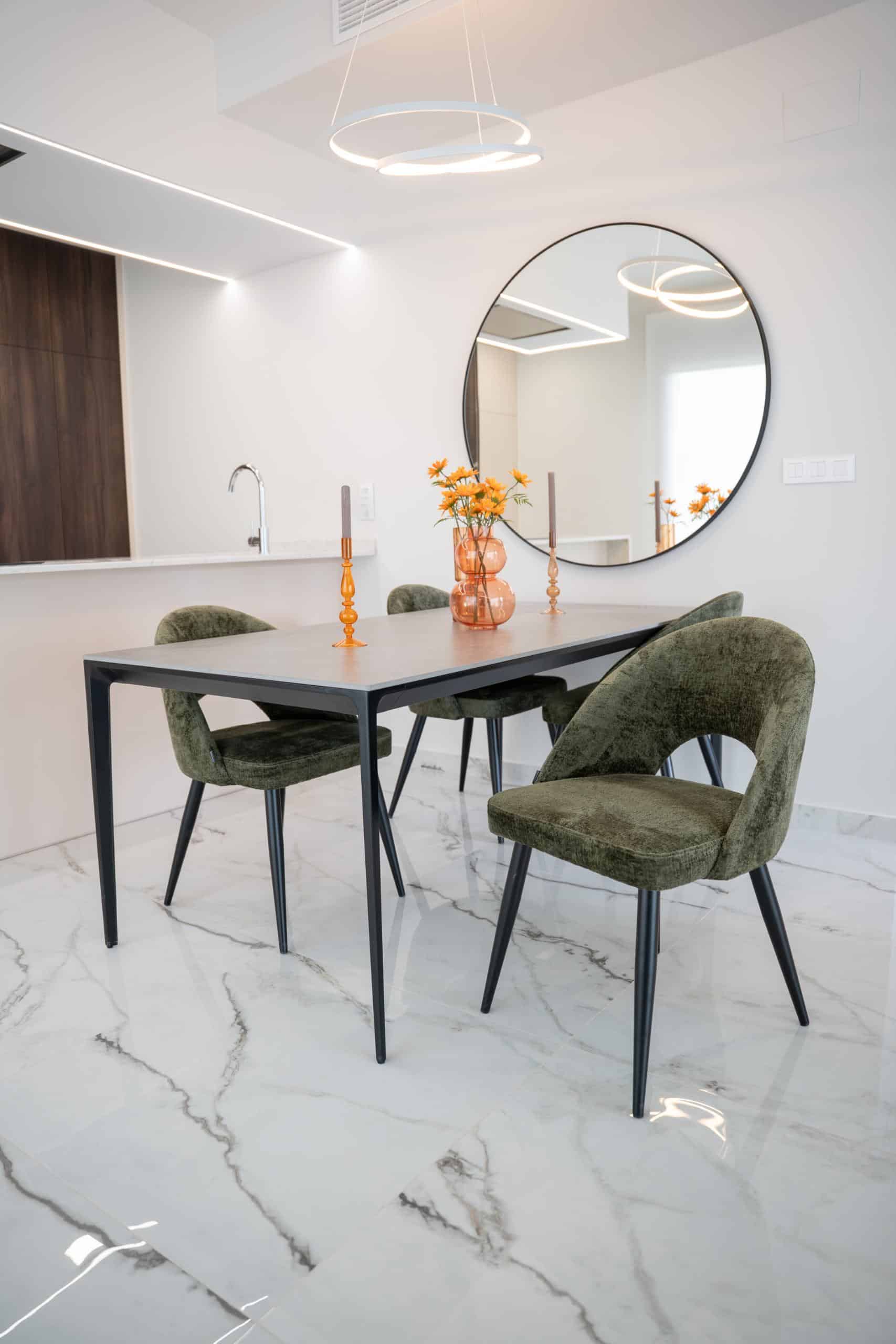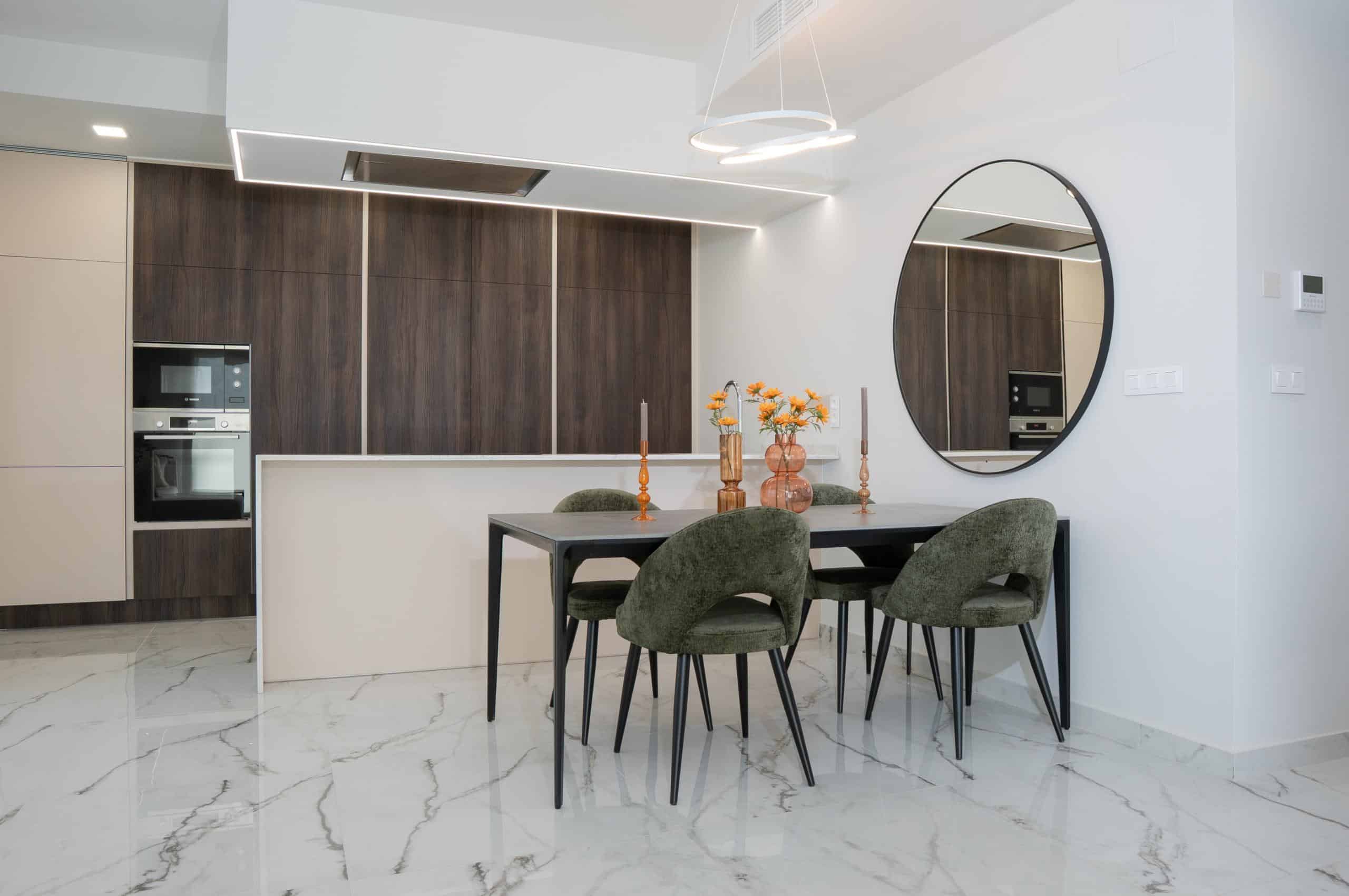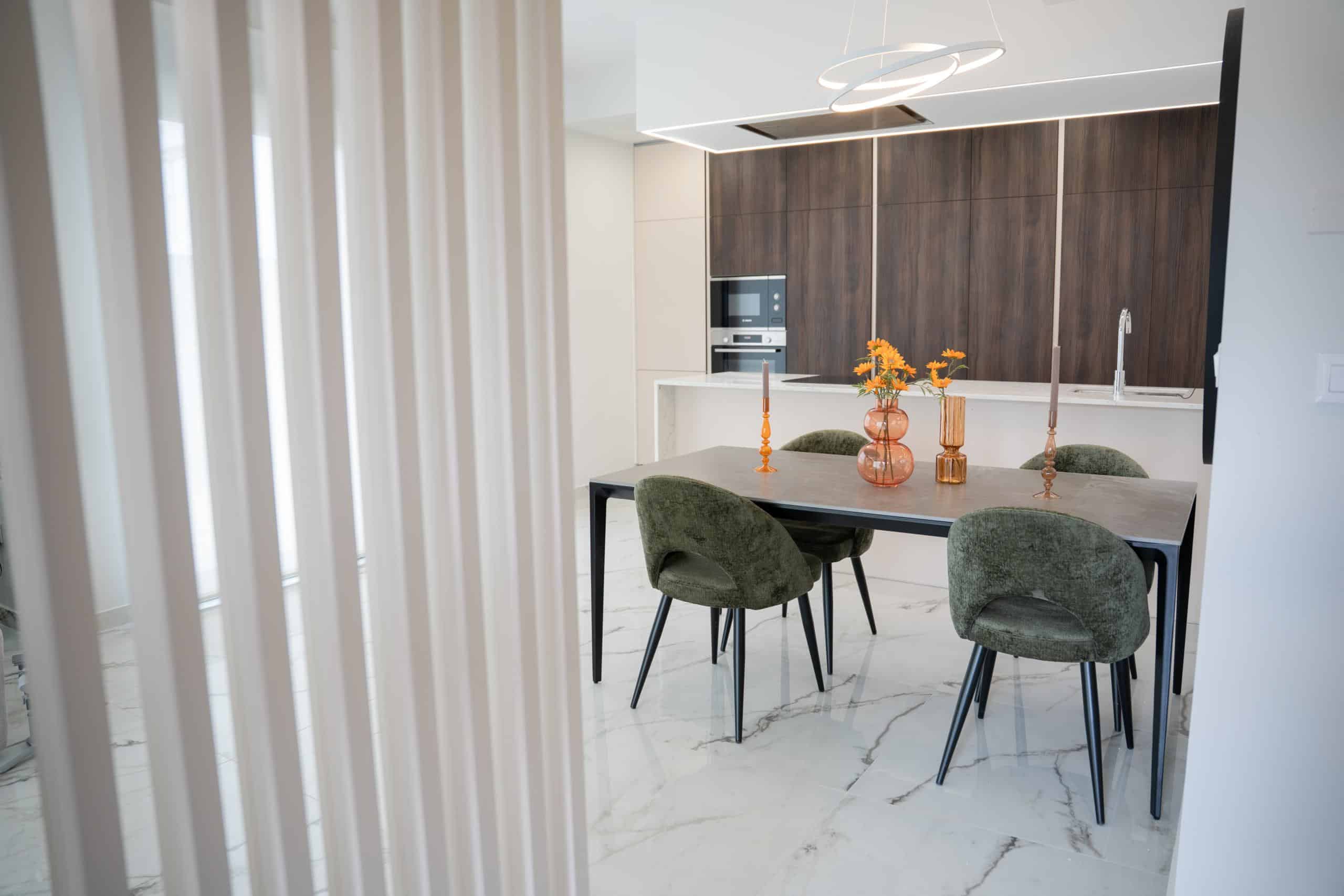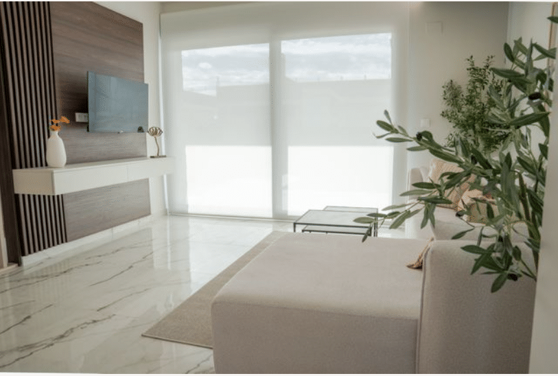 Modelo de villa en forma cuadrada. Compuesta por salón-comedor, cocina abierta con todos los electrodomésticos, 3 habitaciones y 2 baños distribuido en 1 planta. Desde el salón puede disfrutar de las vistas a su piscina.