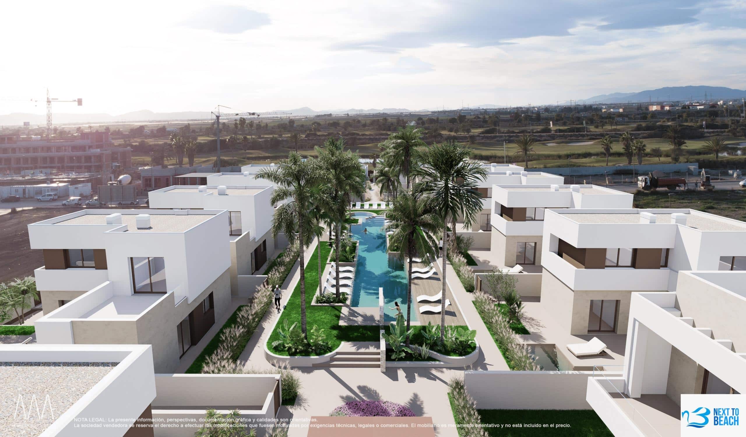 Ubicado a escasos metros del prestigioso campo de golf Serena Golf y a pocos minutos de las playas del Mar Menor y la playa de La Concha en Los Alcázares, este exclusivo proyecto ofrece una variada gama de viviendas. Podrás elegir entre bungalós en planta baja con jardines privados , o bungalós en planta alta con amplias terrazas y solárium privados, todos ellos con diferentes opciones de personalización.