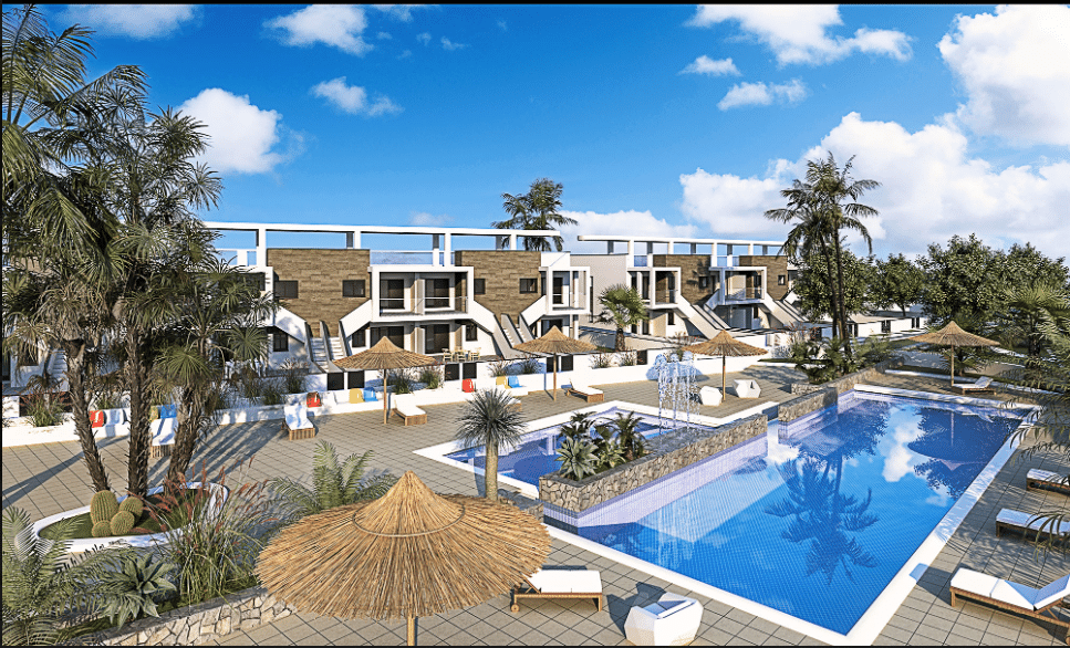 Primera fase recién lanzada: 24 apartamentos (2–3 dormitorios) y 12 bungalows (2 dormitorios). Elige entre bajos con jardín privado, plantas intermedias con terrazas generosas o áticos con solárium en cubierta; en bungalows, planta baja con jardín o planta alta con solárium. Entrega estimada 2027. Superficies aprox. 71–106 m².
