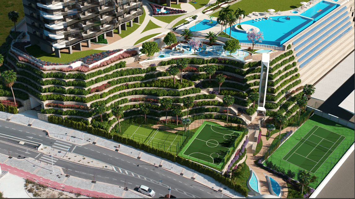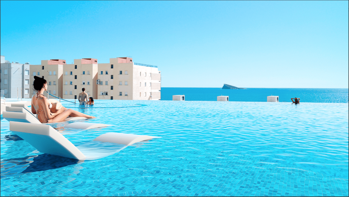 Se encuentra en una zona privilegiada de la playa de Poniente, a tan solo 50 metros. La urbanización cuenta con un total de 286 viviendas con apartamentos de 1, 2, 3 y 4 dormitorios con impresionantes vistas al mar, y con unas amplias terrazas que te permitirán tener la sensación única de estar navegando desde tu casa. Las zonas comunes son la culminación perfecta para este residencial tan especial. Piscinas, una de ellas climatizable, jacuzzis, zona chill out, sala coworking, gimnasio panorámico, una gran zona deportiva con pista de padel, pista de tenis y pista multideporte, o incluso una sala de cine, son algunas de las amenities de las que podrás disfrutar si decides hacer de esta vivienda tu nuevo hogar.