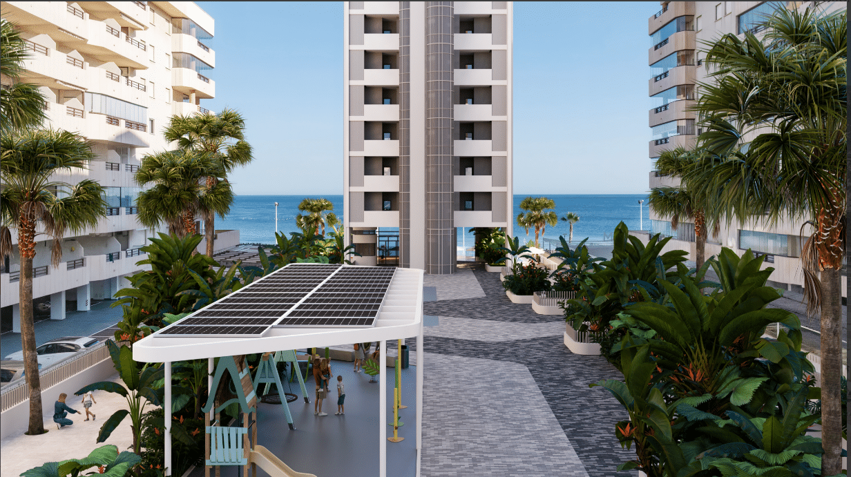 Ubicado en primera línea de la playa de La Fossa en Calpe, con dos accesos peatonales, uno por la Avenida Juan Carlos I y otro desde el mismo paseo marítimo de la playa de La Fossa. La urbanización está compuesta por un total de 72 viviendas con apartamentos de 1, 2 y 3 dormitorios y áticos dúplex con solárium de 3 dormitorios. Las zonas comunes están compuestas por piscina de adultos climatizable infinity con vistas al mar, piscina infantil climatizable, jacuzzis climatizables, playa piscina con zona de duchas, tumbonas y sombrillas, gimnasio panorámico con vistas al mar, sauna, área de juegos infantiles y zona de ejercicios al aire libre.