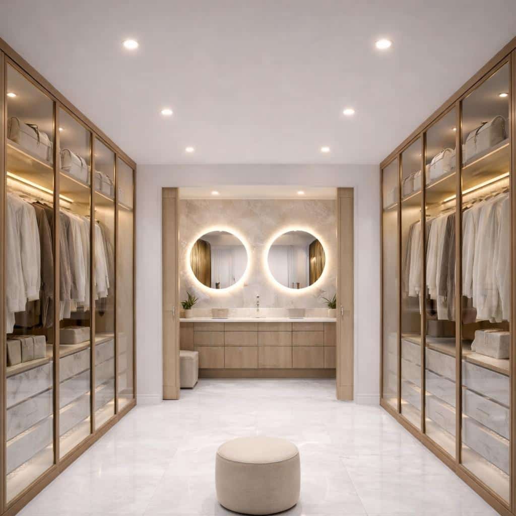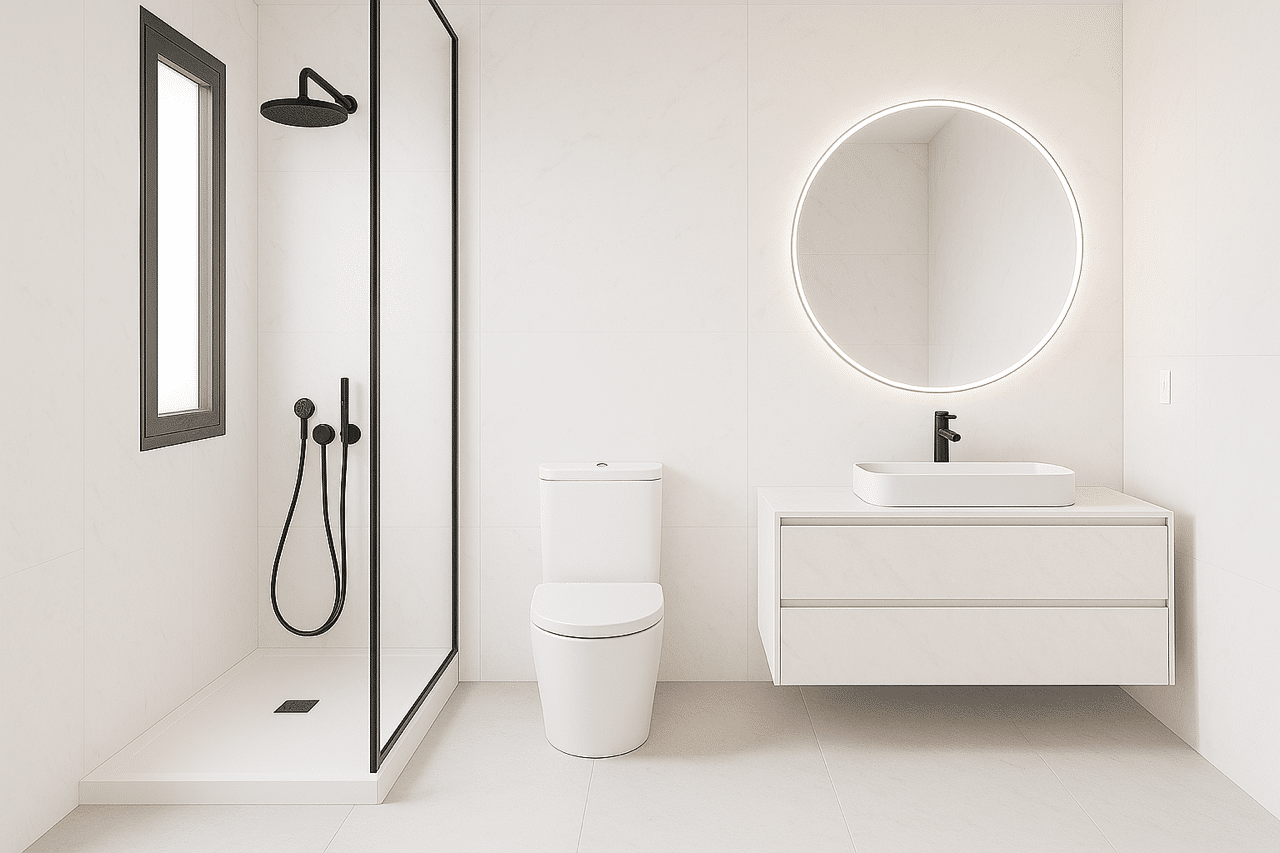 - Baños con look premium: grifería negra, mamparas con perfilería negra, espejo LED retroiluminado y toalleros calefactados.