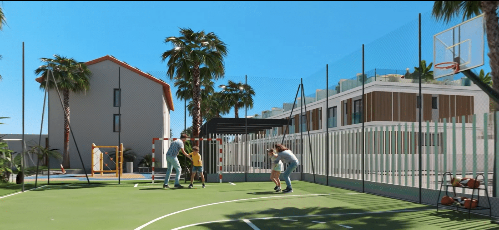 - Pista multideportiva con porterías y canasta